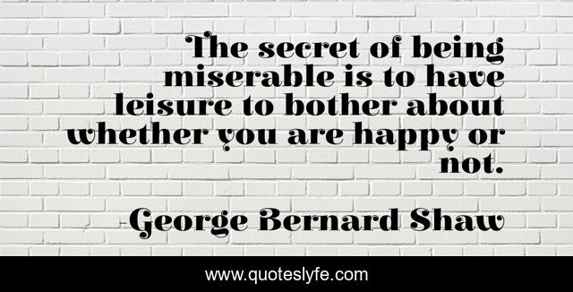 This page presents the quote "The secret of being miserable is to have leisure to bother about whether you are happy or not.". Author of this quote is George Bernard Shaw. .