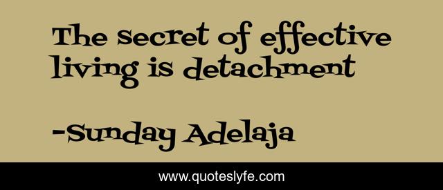 This page presents the quote "The secret of effective living is detachment". Author of this quote is Sunday Adelaja. This quote is about love, people, money, principles, employment, worship, impact, living, jobless,.
