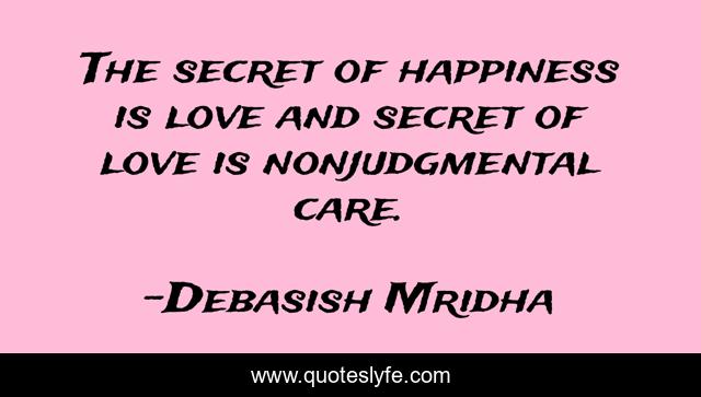 This page presents the quote "The secret of happiness is love and secret of love is nonjudgmental care.". Author of this quote is Debasish Mridha. This quote is about care, life, education, love, knowledge, inspirational, intelligence, philosophy, nonjudgmental,.