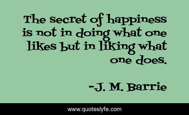 This page presents the quote "The secret of happiness is not in doing what one likes but in liking what one does.". Author of this quote is J. M. Barrie. .