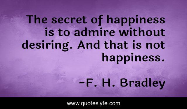This page presents the quote "The secret of happiness is to admire without desiring. And that is not happiness.". Author of this quote is F. H. Bradley. This quote is about admire, secret, without,.