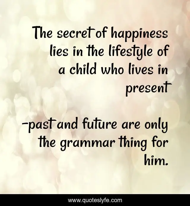 This page presents the quote "The secret of happiness lies in the lifestyle of a child who lives in present". Author of this quote is past and future are only the grammar thing for him.. .
