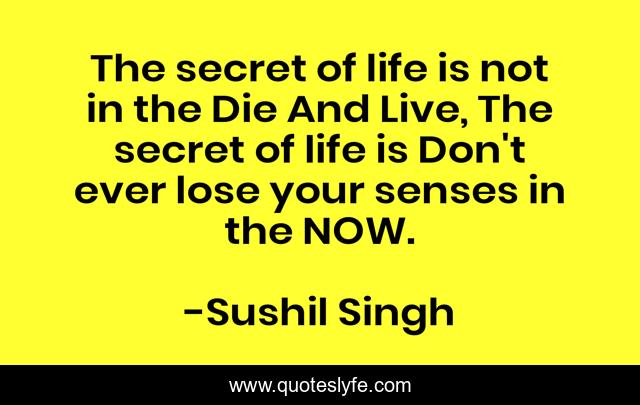 This page presents the quote "The secret of life is not in the Die And Live, The secret of life is Don't ever lose your senses in the NOW.". Author of this quote is Sushil Singh. This quote is about die, live, now, secret-of-life, senses-of-the-the-soul,.