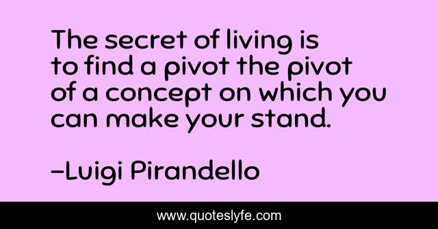 This page presents the quote "The secret of living is to find a pivot the pivot of a concept on which you can make your stand.". Author of this quote is Luigi Pirandello. .