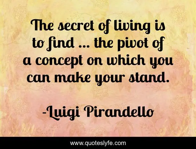 This page presents the quote "The secret of living is to find ... the pivot of a concept on which you can make your stand.". Author of this quote is Luigi Pirandello. .