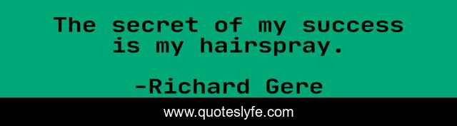This page presents the quote "The secret of my success is my hairspray.". Author of this quote is Richard Gere. This quote is about success is, secret,.
