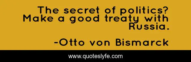 This page presents the quote "The secret of politics? Make a good treaty with Russia.". Author of this quote is Otto von Bismarck. This quote is about politics, russia,.