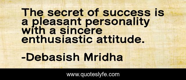 "Debasish Mridha Quotes." Quoteslyfe.com, 2025. Sat. 06 Dec. 2025. <https://www.quoteslyfe.com/quote/The-secret-of-success-is-a-pleasant-135736>.