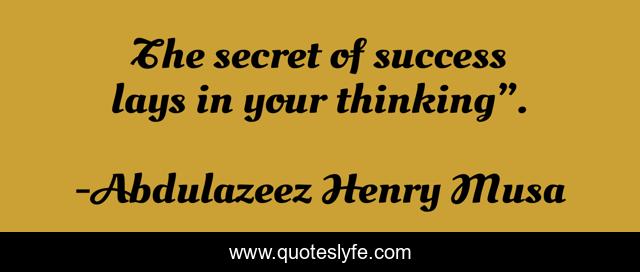 This page presents the quote "The secret of success lays in your thinking”.". Author of this quote is Abdulazeez Henry Musa. .