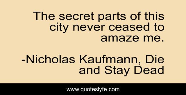 "Nicholas Kaufmann, Die and Stay Dead Quotes." Quoteslyfe.com, 2025. Tue. 09 Dec. 2025. <https://www.quoteslyfe.com/quote/The-secret-parts-of-this-city-never-212299>.