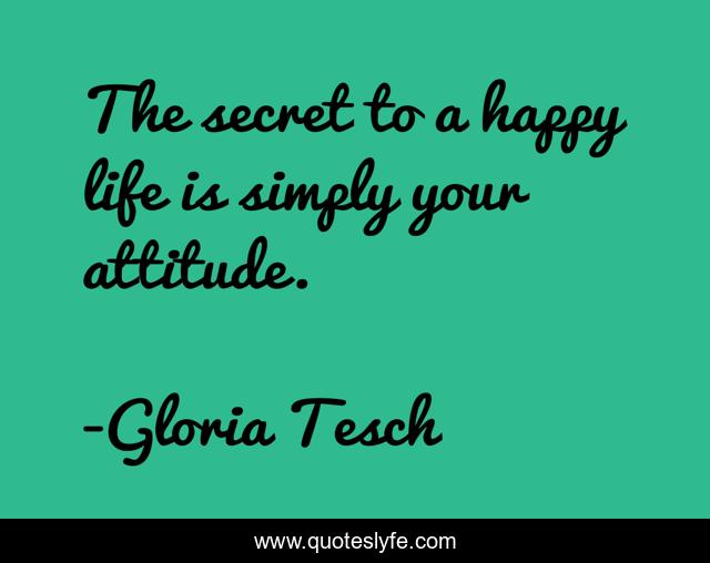 This page presents the quote "The secret to a happy life is simply your attitude.". Author of this quote is Gloria Tesch. This quote is about inspiring, positive-attitude, life, gloria-tesch, behaviour, quotes, attitude, inspirational, quotes-about-life,.