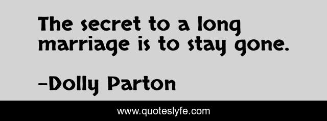 This page presents the quote "The secret to a long marriage is to stay gone.". Author of this quote is Dolly Parton. This quote is about gone, secret, long,.