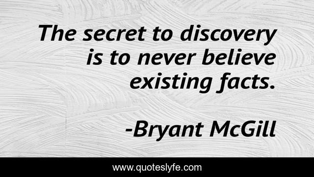 This page presents the quote "The secret to discovery is to never believe existing facts.". Author of this quote is Bryant McGill. This quote is about reason, believe, discovery, investigation, critical-thinking,.