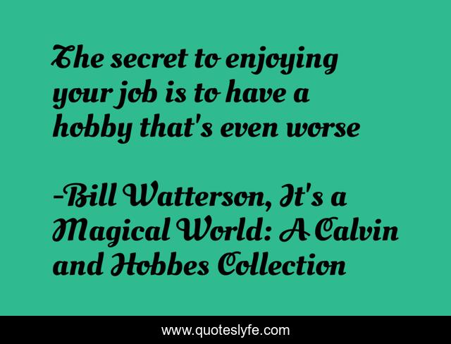 This page presents the quote "The secret to enjoying your job is to have a hobby that's even worse". Author of this quote is Bill Watterson, It's a Magical World: A Calvin and Hobbes Collection. .