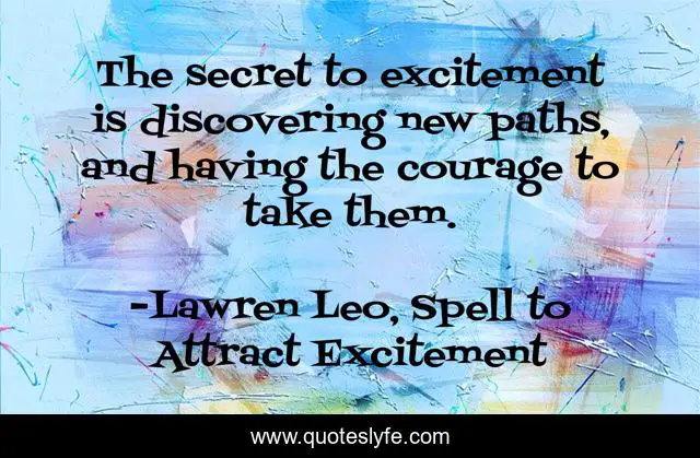 This page presents the quote "The secret to excitement is discovering new paths, and having the courage to take them.". Author of this quote is Lawren Leo, Spell to Attract Excitement. This quote is about excitement, paths, courage, secrets, discovery,.