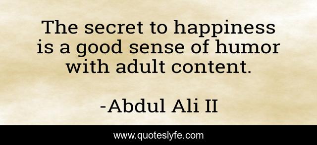 This page presents the quote "The secret to happiness is a good sense of humor with adult content.". Author of this quote is Abdul Ali II. This quote is about funny, secret, comedy, humor, happiness,.