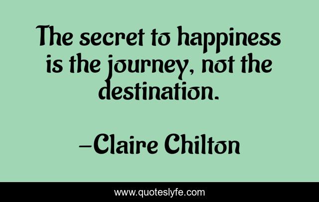 This page presents the quote "The secret to happiness is the journey, not the destination.". Author of this quote is Claire Chilton. This quote is about enthusiasm, happiness, inspirational,.
