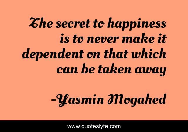 This page presents the quote "The secret to happiness is to never make it dependent on that which can be taken away". Author of this quote is Yasmin Mogahed. This quote is about secret, dependence, happiness,.