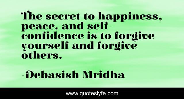 This page presents the quote "The secret to happiness, peace, and self-confidence is to forgive yourself and forgive others.". Author of this quote is Debasish Mridha. This quote is about confidence, peace, love, knowledge, inspirational, intelligence, philosophy, education, life,.