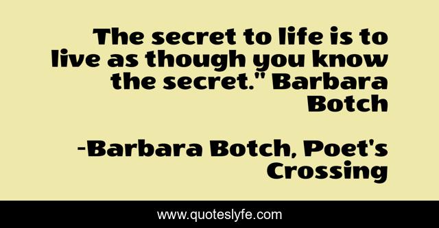 "Barbara Botch, Poet's Crossing Quotes." Quoteslyfe.com, 2025. Sat. 06 Dec. 2025. <https://www.quoteslyfe.com/quote/The-secret-to-life-is-to-live-25216>.