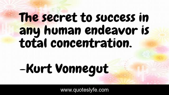 This page presents the quote "The secret to success in any human endeavor is total concentration.". Author of this quote is Kurt Vonnegut. .