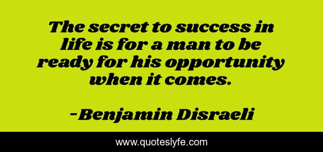This page presents the quote "The secret to success in life is for a man to be ready for his opportunity when it comes.". Author of this quote is Benjamin Disraeli. .