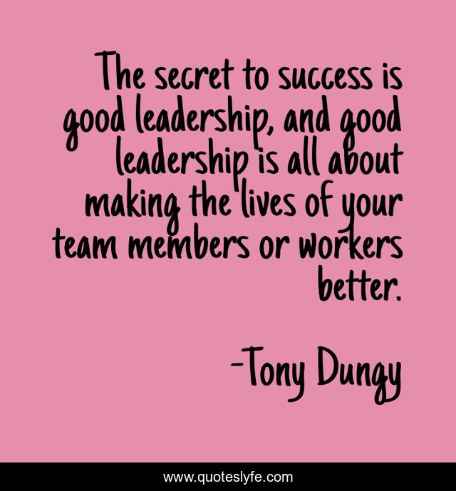 This page presents the quote "The secret to success is good leadership, and good leadership is all about making the lives of your team members or workers better.". Author of this quote is Tony Dungy. This quote is about leadership, success, team,.