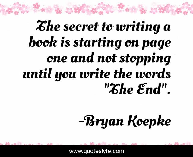 This page presents the quote "The secret to writing a book is starting on page one and not stopping until you write the words "The End".". Author of this quote is Bryan Koepke. This quote is about writer, books, finish,.