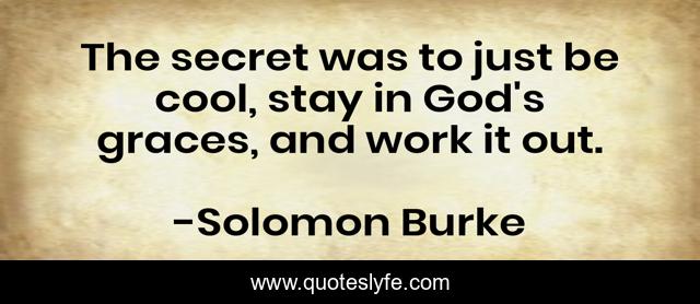 This page presents the quote "The secret was to just be cool, stay in God's graces, and work it out.". Author of this quote is Solomon Burke. This quote is about god, secret, work,.