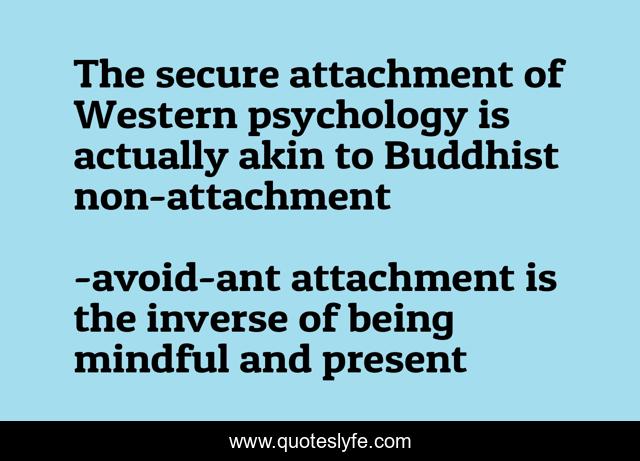 This page presents the quote "The secure attachment of Western psychology is actually akin to Buddhist non-attachment". Author of this quote is avoid-ant attachment is the inverse of being mindful and present. .