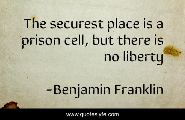 This page presents the quote "The securest place is a prison cell, but there is no liberty". Author of this quote is Benjamin Franklin. This quote is about freedom, secure, liberty, prison,.