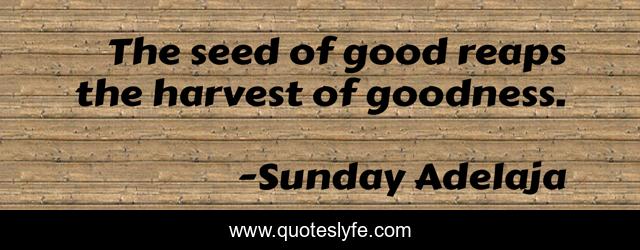 This page presents the quote "The seed of good reaps the harvest of goodness.". Author of this quote is Sunday Adelaja. This quote is about seed, harvest, goodness, reaps,.