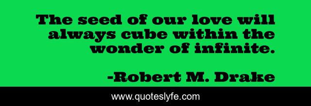This page presents the quote "The seed of our love will always cube within the wonder of infinite.". Author of this quote is Robert M. Drake. This quote is about lovequotes, sadquotes, poetry, quotes, instadaily, happyquotes, relationships, sayings, writer,.