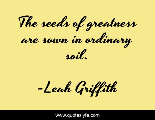 This page presents the quote "The seeds of greatness are sown in ordinary soil.". Author of this quote is Leah Griffith. This quote is about spirituality, encouragement, inspiration,.