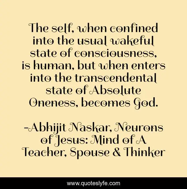 The self, when confined into the usual wakeful state of consciousness, is human, but when enters into the transcendental state of Absolute Oneness, becomes God.