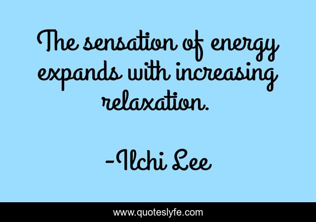 This page presents the quote "The sensation of energy expands with increasing relaxation.". Author of this quote is Ilchi Lee. This quote is about energy, ilchi-lee, relaxation,.
