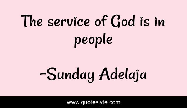 This page presents the quote "The service of God is in people". Author of this quote is Sunday Adelaja. This quote is about love, people, money, principles, employment, worship, celebrating-people, destiny, service,.