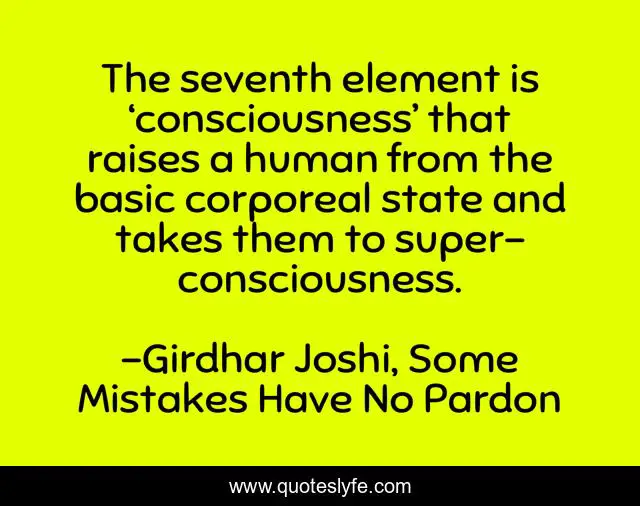 "Girdhar Joshi, Some Mistakes Have No Pardon Quotes." Quoteslyfe.com, 2025. Fri. 05 Dec. 2025. <https://www.quoteslyfe.com/quote/The-seventh-element-is-consciousness-that-raises-155807>.