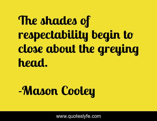 This page presents the quote "The shades of respectability begin to close about the greying head.". Author of this quote is Mason Cooley. This quote is about head, shades, begin,.