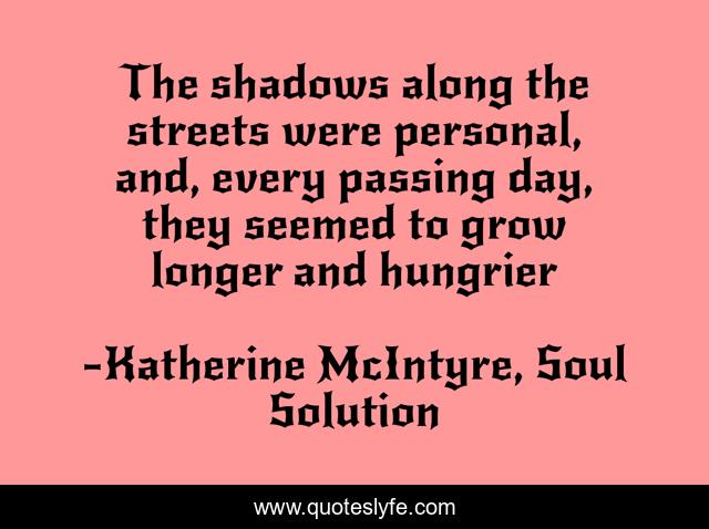 "Katherine McIntyre, Soul Solution Quotes." Quoteslyfe.com, 2025. Mon. 08 Dec. 2025. <https://www.quoteslyfe.com/quote/The-shadows-along-the-streets-were-personal-223474>.