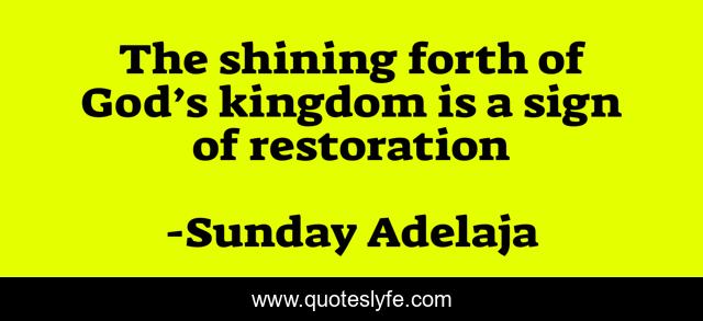 This page presents the quote "The shining forth of God’s kingdom is a sign of restoration". Author of this quote is Sunday Adelaja. This quote is about kingdom, god, restoration, shining, sign,.