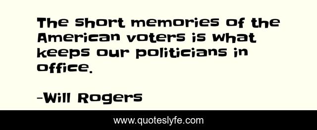 This page presents the quote "The short memories of the American voters is what keeps our politicians in office.". Author of this quote is Will Rogers. .