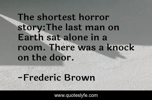 This page presents the quote "The shortest horror story:The last man on Earth sat alone in a room. There was a knock on the door.". Author of this quote is Frederic Brown. This quote is about funny, horror, comedy,.
