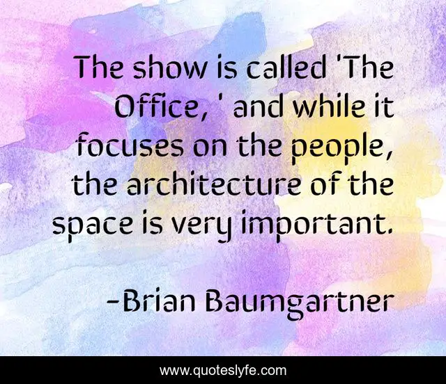 This page presents the quote "The show is called 'The Office, ' and while it focuses on the people, the architecture of the space is very important.". Author of this quote is Brian Baumgartner. This quote is about important, space, people,.