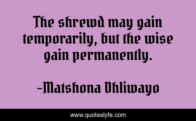 "Matshona Dhliwayo Quotes." Quoteslyfe.com, 2025. Sat. 06 Dec. 2025. <https://www.quoteslyfe.com/quote/The-shrewd-may-gain-temporarily-but-the-98764>.