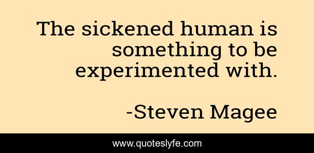 This page presents the quote "The sickened human is something to be experimented with.". Author of this quote is Steven Magee. This quote is about sickened, experimented, with, something, human,.