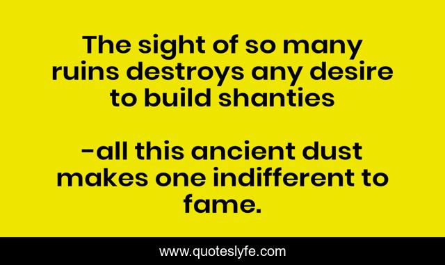 "all this ancient dust makes one indifferent to fame. Quotes." Quoteslyfe.com, 2025. Fri. 05 Dec. 2025. <https://www.quoteslyfe.com/quote/The-sight-of-so-many-ruins-destroys-70279>.