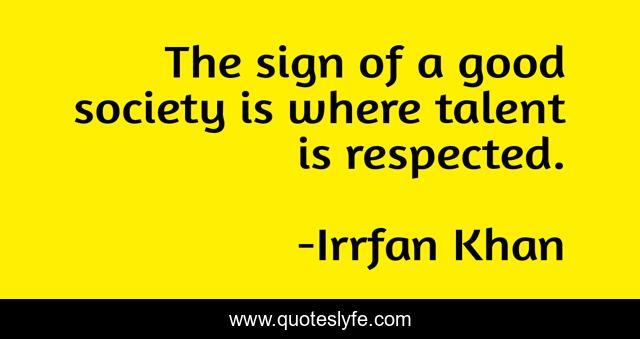 This page presents the quote "The sign of a good society is where talent is respected.". Author of this quote is Irrfan Khan. This quote is about good, talent, sign,.