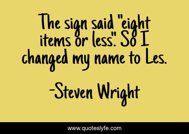 This page presents the quote "The sign said "eight items or less". So I changed my name to Les.". Author of this quote is Steven Wright. This quote is about funny, comedy, humor,.