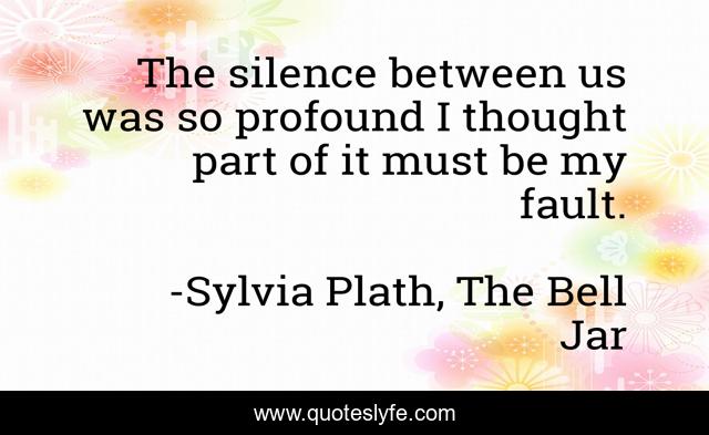This page presents the quote "The silence between us was so profound I thought part of it must be my fault.". Author of this quote is Sylvia Plath, The Bell Jar. .